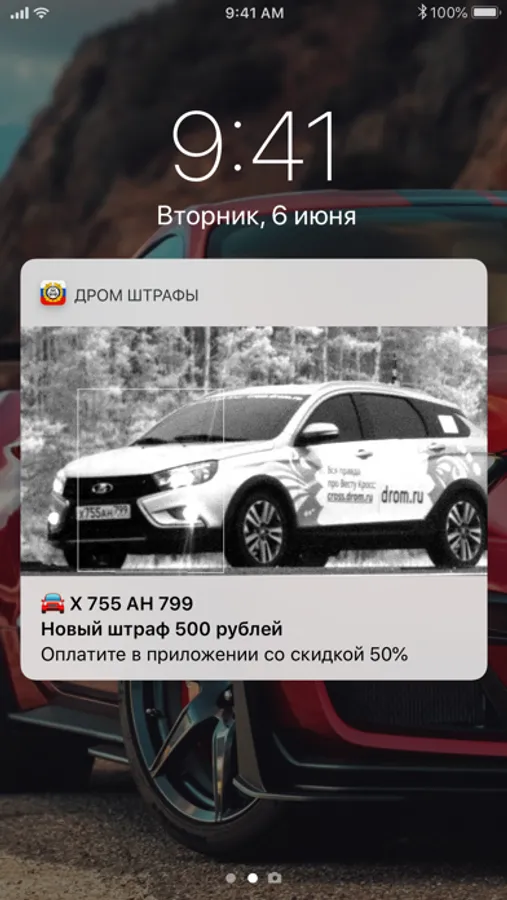 2. Подпишитесь на уведомления после первой проверки штрафов, и далее мы сами будем ежедневно обновлять информацию по вашему автомобилю. Когда вам прилетит штраф, приложение незамедлительно отправит уведомление