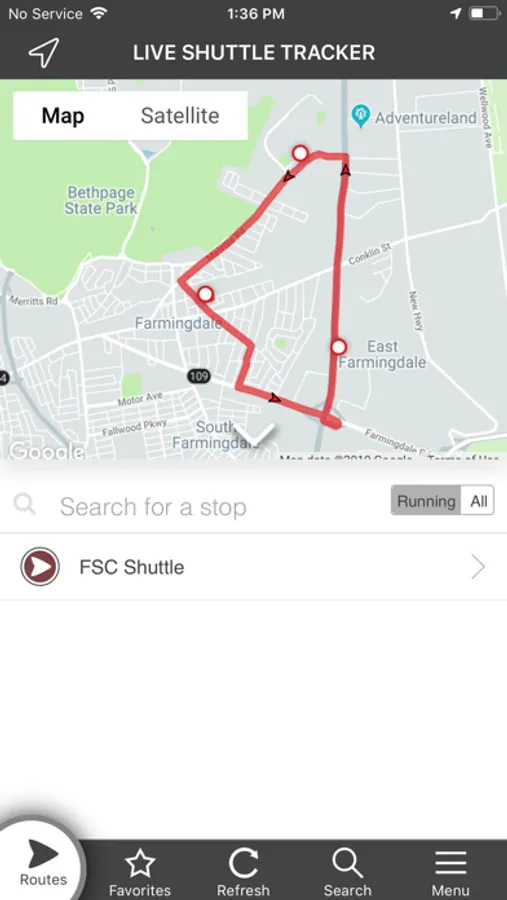Track the Farmingdale State College shuttle right from your mobile device. View the real-time location of the vehicles on route, get estimated arrival times, set stop reminders, and get important notifications about route and schedule changes. Download the FSC Shuttle app today!