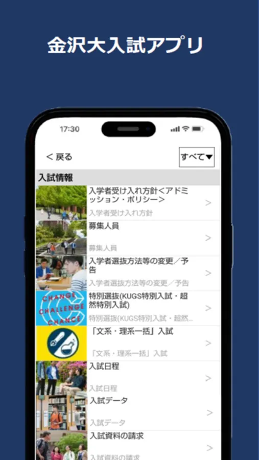 金沢大学への進学を考える高校生に向けたスマートフォン利用者向けの公式アプリケーションです。