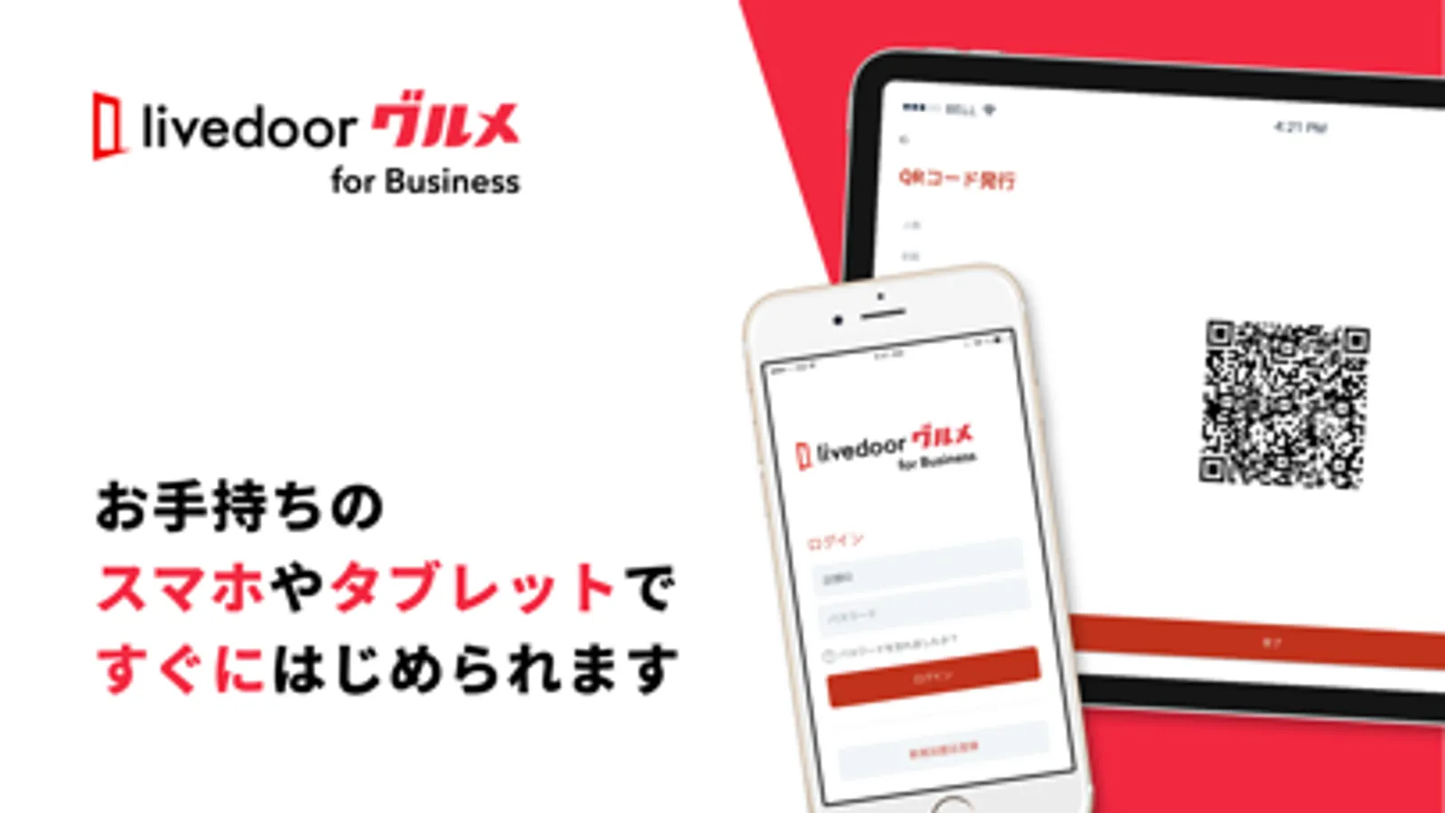 ライブドアグルメ for Businessのお申し込みが必要です。(初期費用・月額費用・導入費用0円)
