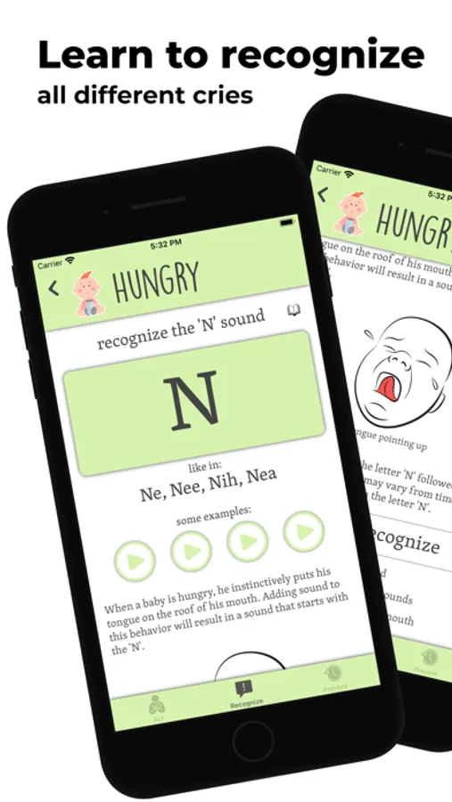 Discover why your baby is crying and learn how to distinguish different baby cries yourself. (for babies up to 6 months)