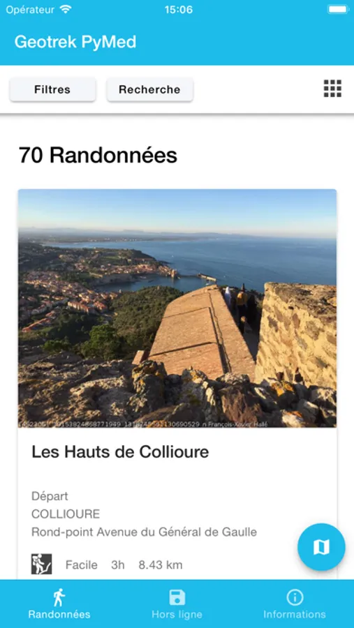 Visitez la destination Pyrénées-Méditerranée avec l’application mobile « Géotrek PyMed ». Déclinaison du site accessible sur https://rando.tourisme-pyrenees-mediterranee.fr , l’application mobile vous permet de découvrir l’ensemble des activités de pleine nature et le patrimoine du territoire Pyrénées-Méditerranée.