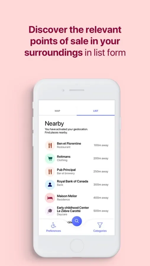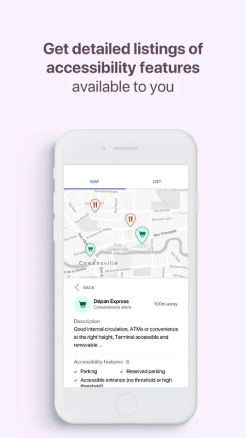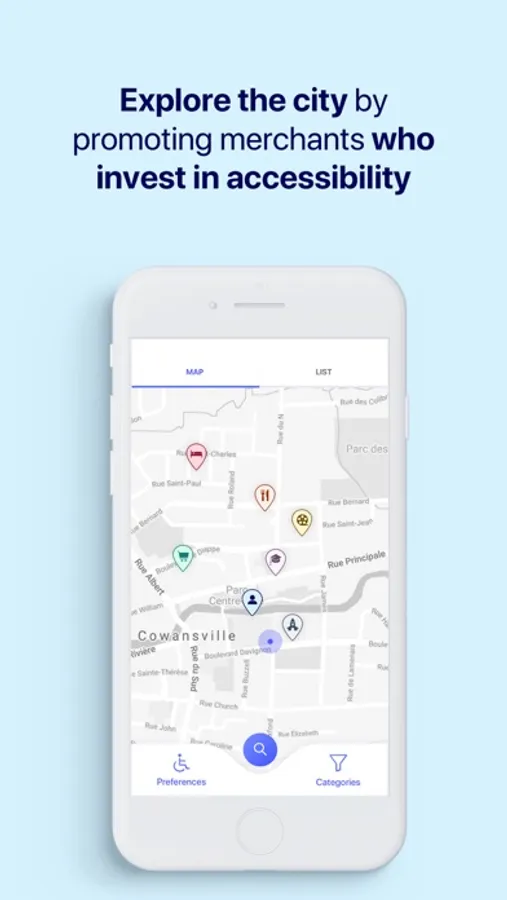 EasyAccess allows people with disabilities or reduced mobility to check with a free application downloadable on their smart phone which places they plan to go are accessible and what services are offered (entrance slope, toilet adapted, elevator, etc.).