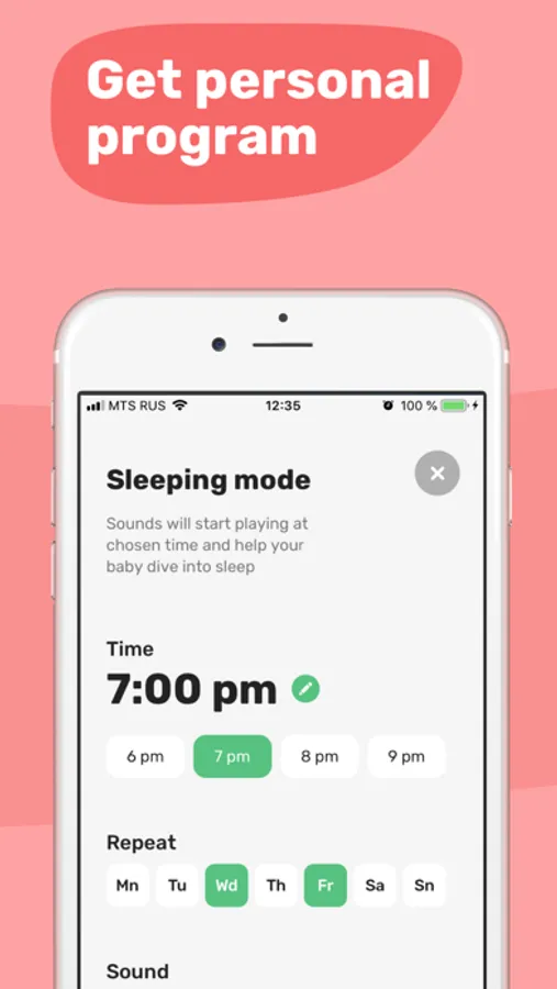 Put your little one to sleep in a few minutes by playing one of 100+ relaxing sounds in 6 categories designed by practicing somnologists and the best sound engineers. Stay relaxed and fall asleep quickly even through the busiest nights.