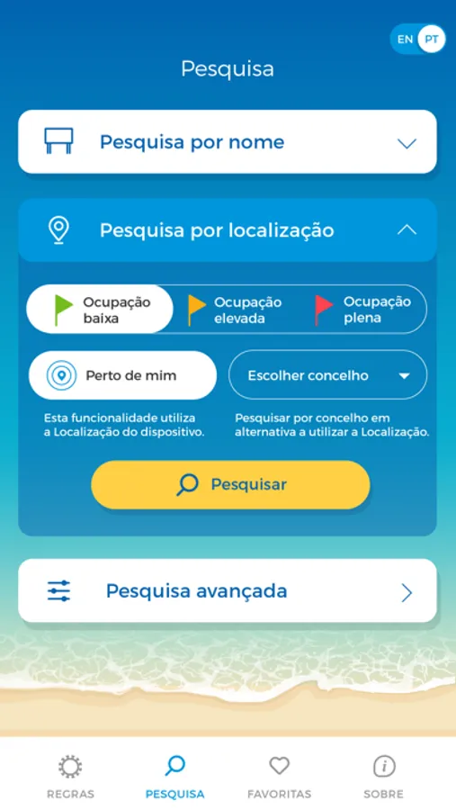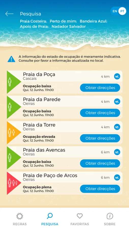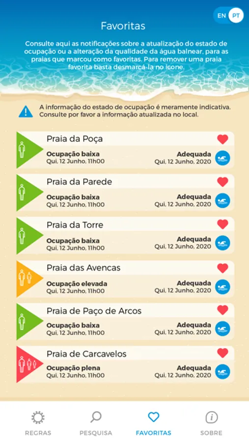 Selecione na app as praias com ocupação baixa, vigiadas, com boa qualidade e outras condições importantes para si.