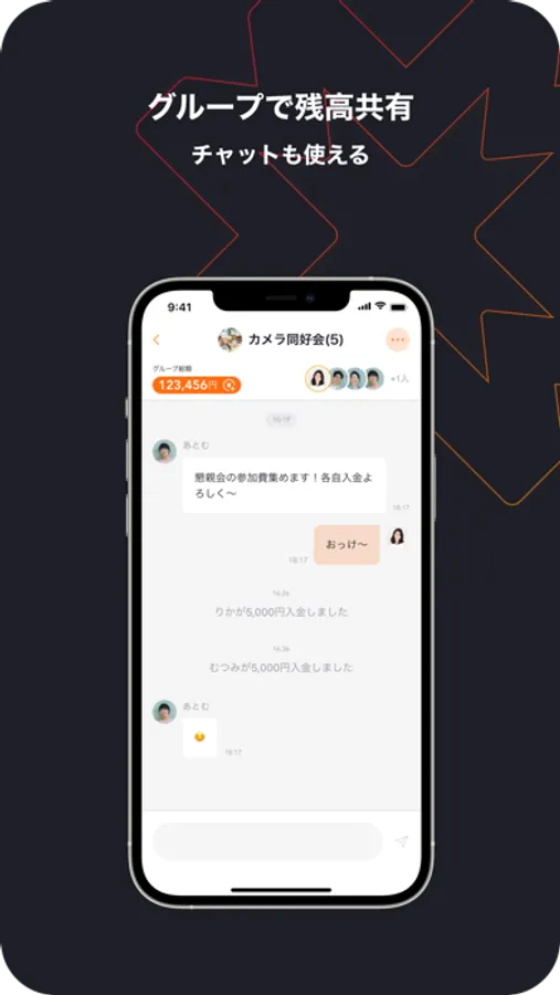 また、友人間での残高送金や、グループを作成して残高を共有するなど家族や友人間での利用に特化した利用が可能です。