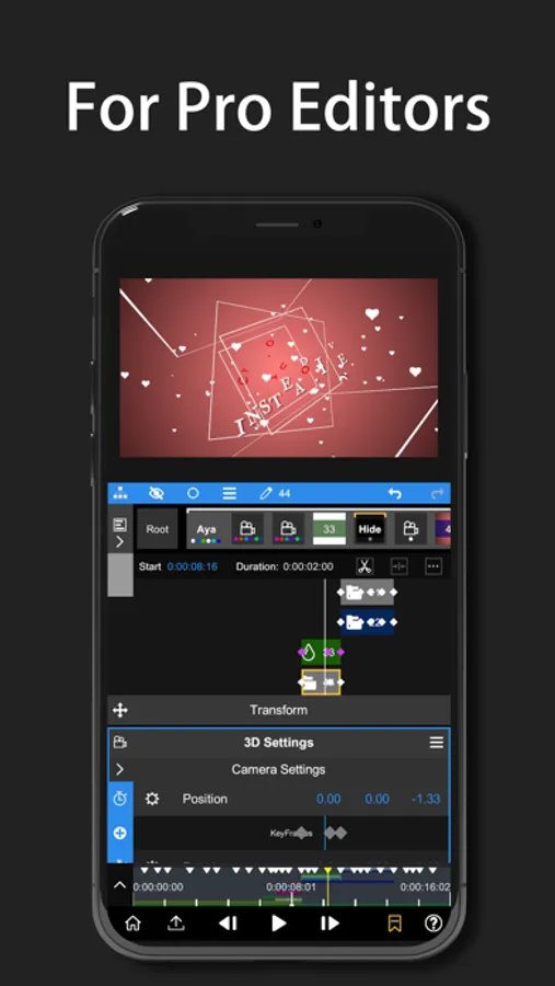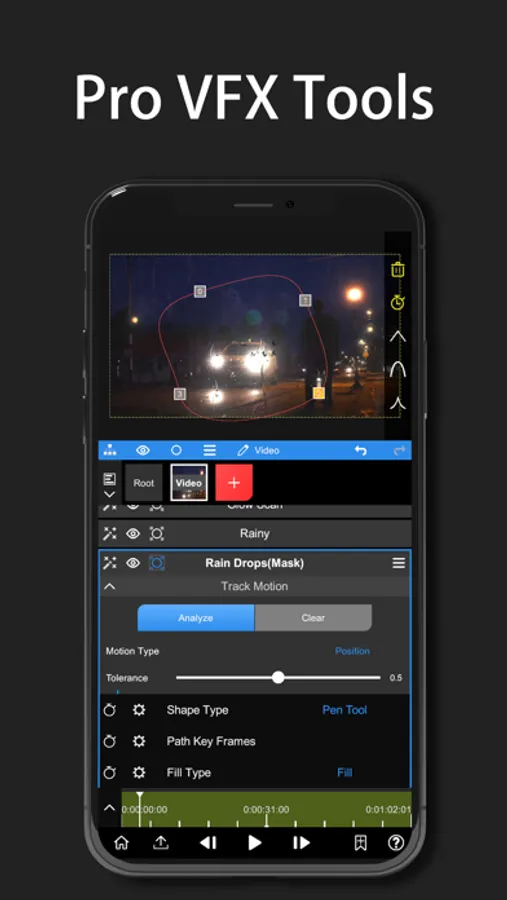 Various Editing Tools are available: Motion Tracker, Pen Tool, Timeline, Keyframe animation, Curve Editor, Masking, Color Correction, Frame Blend, Puppet Pin, etc.