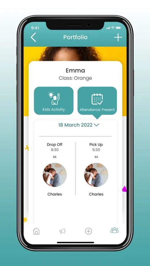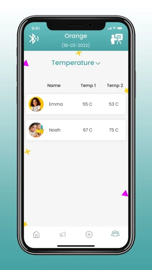 An application for parents to check their student’s attendance and activity and for teachers to upload students' temperature, attendance and pictures of the students’ activity Teachers are able to take temperature using a thermometer that synchronises with the application in real time and even select the guardian that came to pick/drop the student.