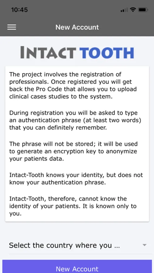 Intact-tooth implements a procedure that respects the regulation of protection of sensitive health data. The method is carried out through anonymity. The data refer exclusively to the professional and patient's identification code.