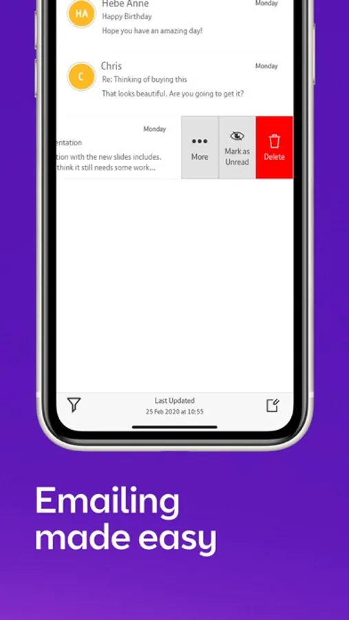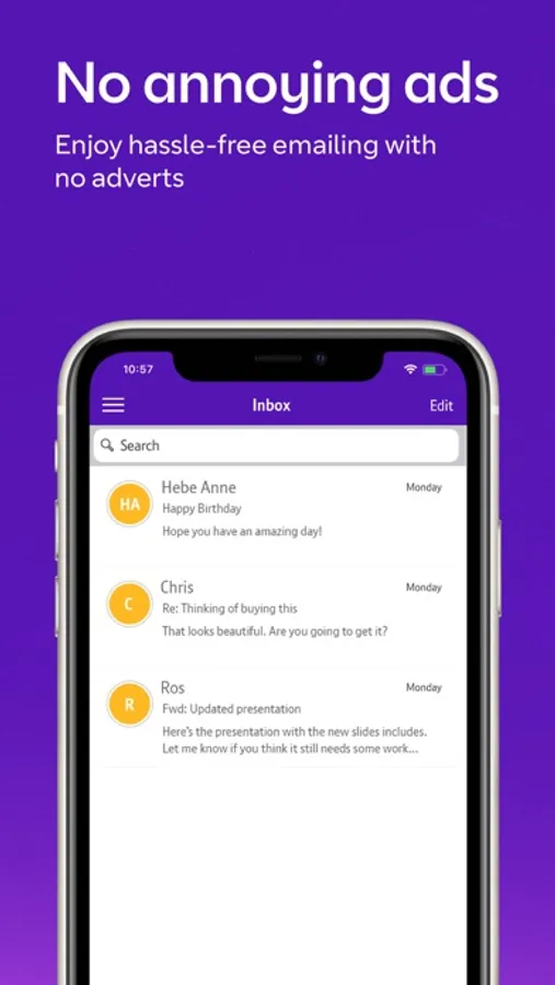 - Hassle-free emailing - the app has a clear, user-friendly interface that makes it easy to send, read and organise your email.