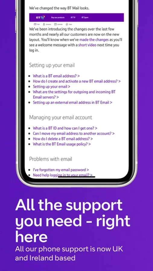 - A brand new app – Designed specifically for our email service, completely BT-run and UK supported.