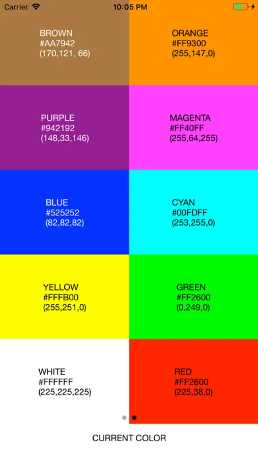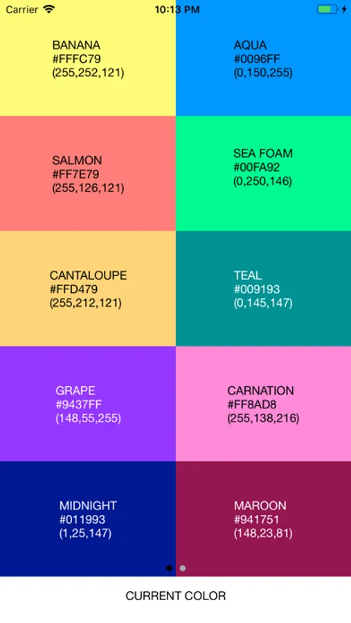 * Colors - Choose from colors accompanied by Hex & RGB values.