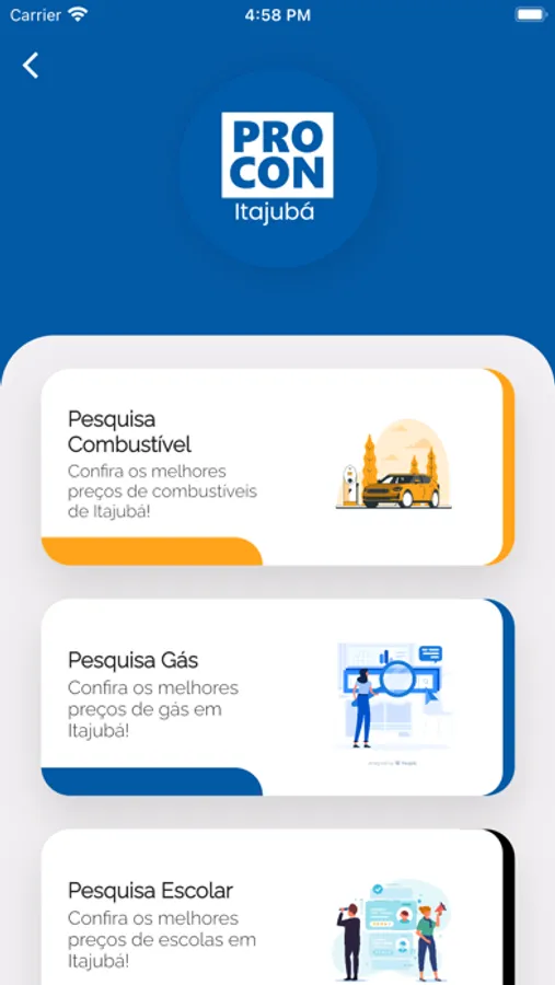 Prefeitura Municipal de Itajubá - Aplicativo Procon Você, Consulte pesquisas de preço de combustíveis, gás, cesta básica entre outras realizadas especialmente para você. Faça denuncias e reclamações ao Procon de seu município.
