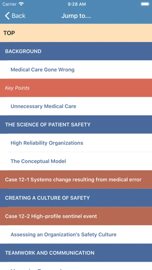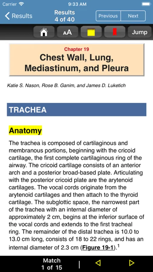 This app is very intuitive and easy to navigate, allowing you to browse the contents or search for topics. The powerful search tool gives you word suggestions that appear in the text as you type, so it is lightning fast and helps with spelling those long medical terms. The search tool also keeps a recent history of past search terms so you can go back to a previous search result very easily. You have the ability to create notes and bookmarks separately for text, images and tables to enhance your learning. You can also change the text size for easier reading.
