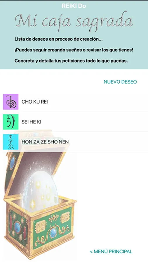 ¿Y como no? También hemos incluido una caja REIKI que se creara especialmente para ti cuando entres, en ella puedes depositar todos tus deseos de manera que los podrás visualizar con mayor intensidad estes donde estes.