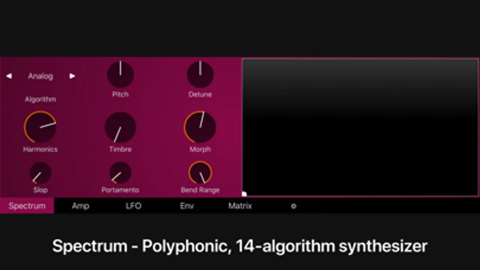 Spectrum is a collection of 3 Audio Unit synthesizers and one Audio Unit effect.