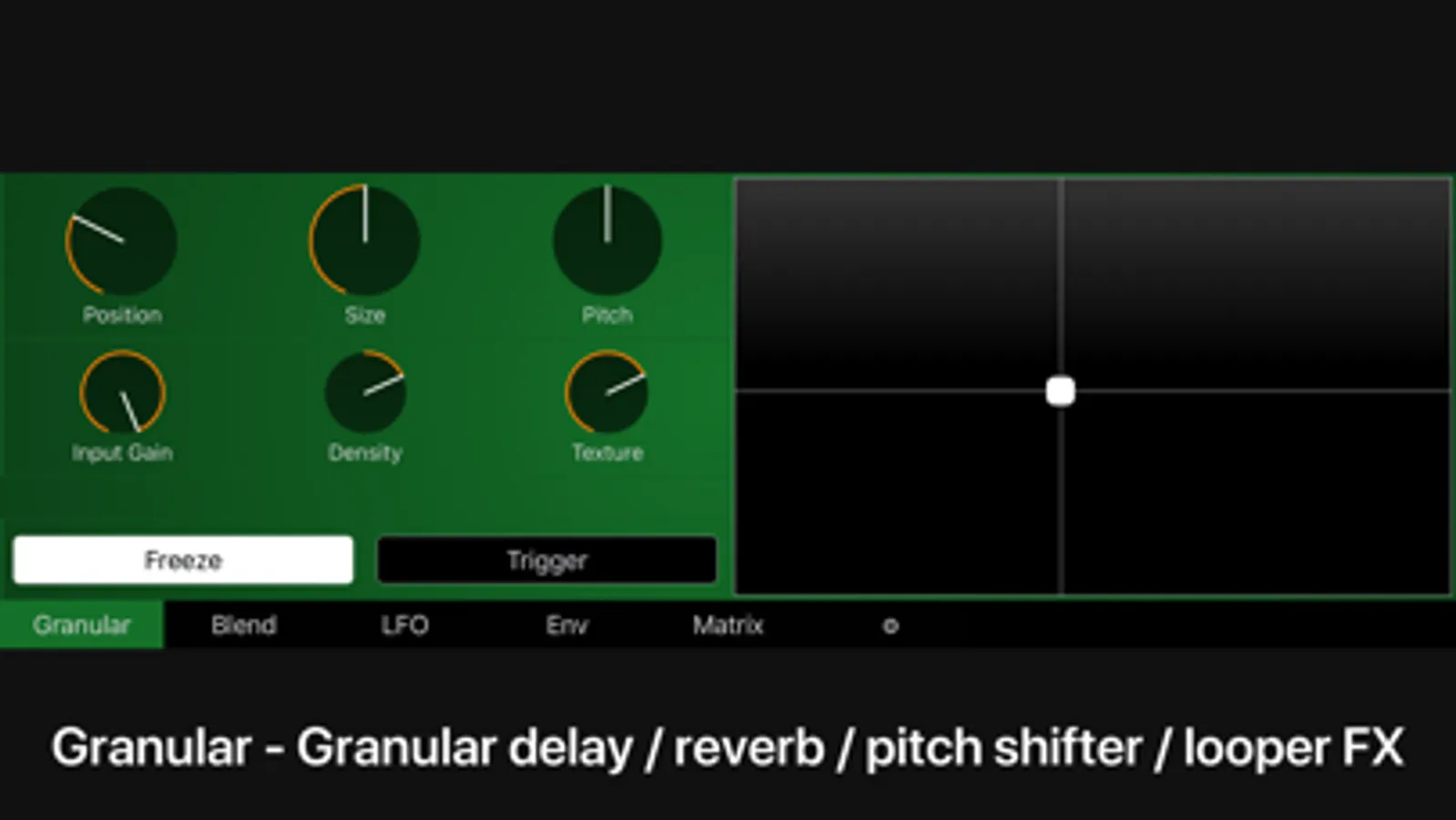 Granular - Granular sampler, looper, pitch shifter, reverb effect. Note that Granular is an Audio Unit effect, not an instrument, so it goes in an effect slot.
