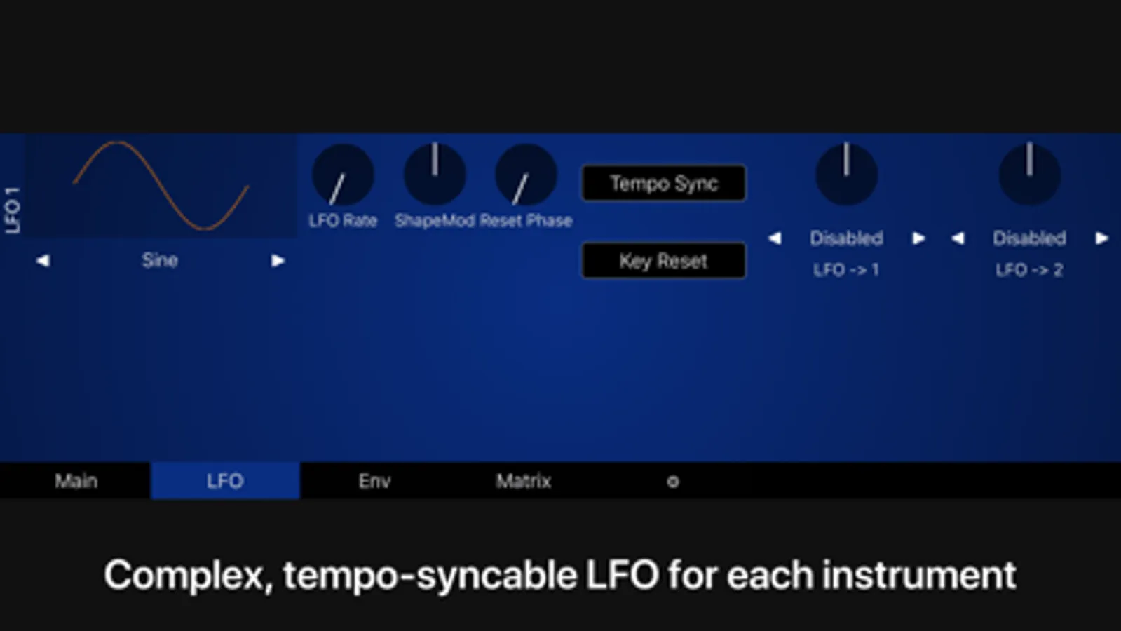 - modulation LFO featuring tempo sync, key reset, reset phase adjustment