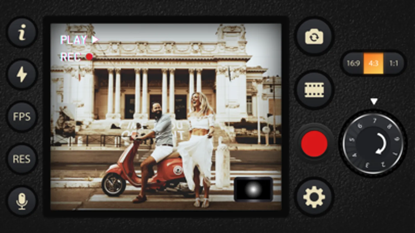 • Change 8mm effects, resolution, lenses, and more important characteristics to your camera and turn every video you take into a complete classic movie.
