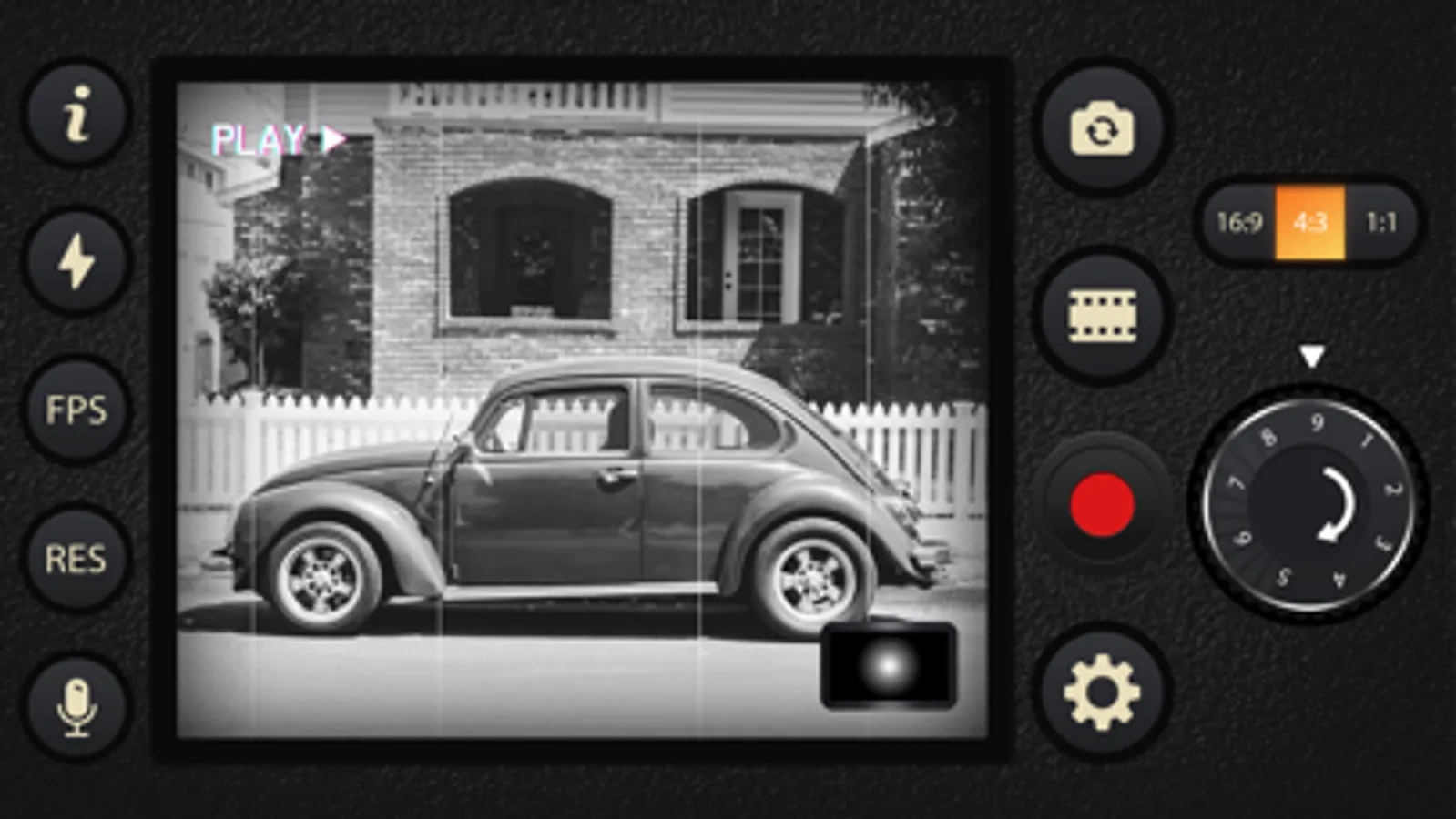 • Record videos at any moment and add amazing real time old film effects to your films.