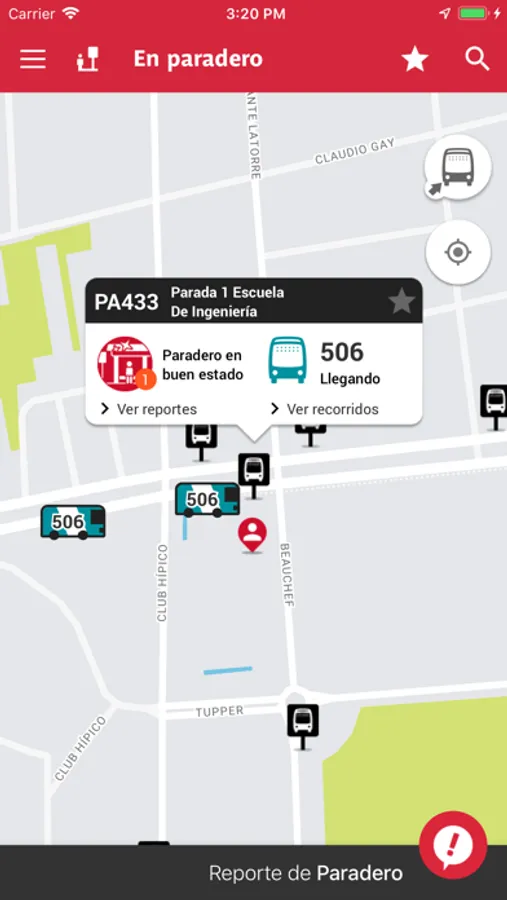 - Reporte entre Usuarios (evaluar el estado de un bus o de un Paradero)