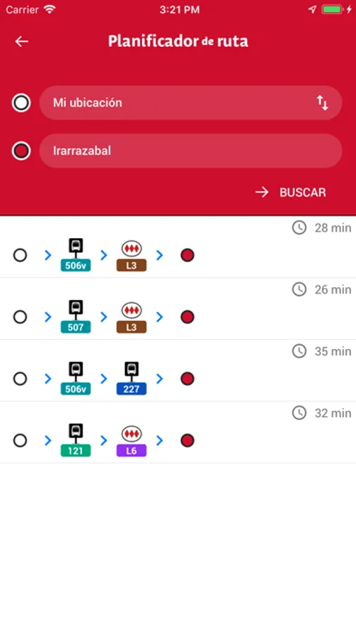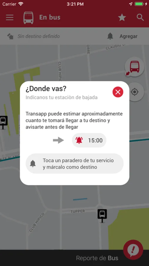 - Mapa de zonas cercanas a tu localización, muestra los buses que se acercan al paradero
