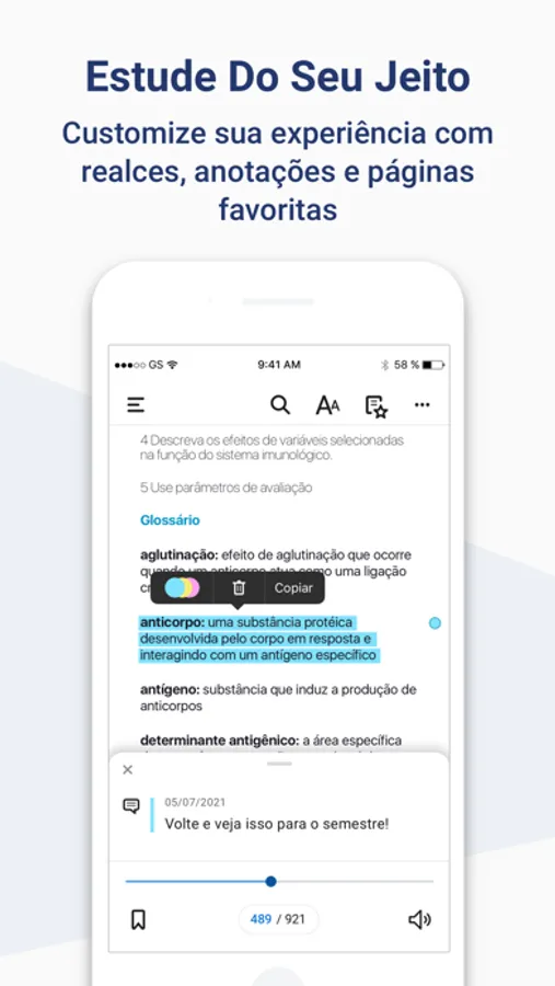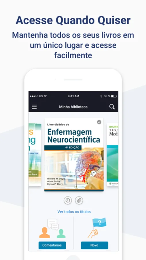 Use the Minha Biblioteca app to download and access books from My Library on iPad, iPhone, or iPod Touch. Read your books offline and create notes and highlights to help with your studies.