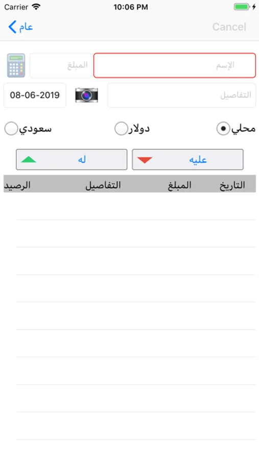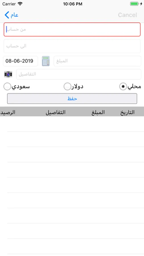 يمكنك أيضا تحديد تاريخ العملية بالنقر على التاريخ والذي يحتوي على تاريخ اليوم كقيمة افتراضية.