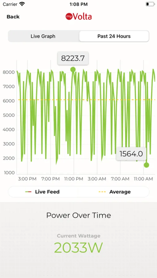 Integrated with the power system through the myVolta Bluetooth hardware (sold separately), users can monitor their system stats including: