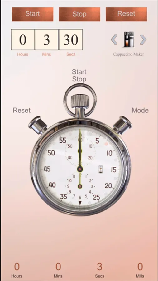 Direct Control - Direct push-button control on the Chrome Stopwatch buttons, which animate when pressed.