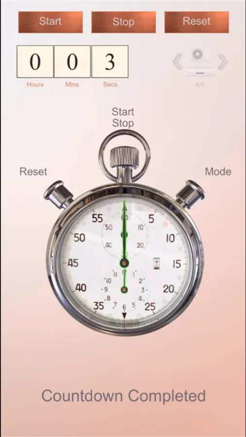 Countdown End Alarm - Audio alarm to remind the user the countdown timer expired.