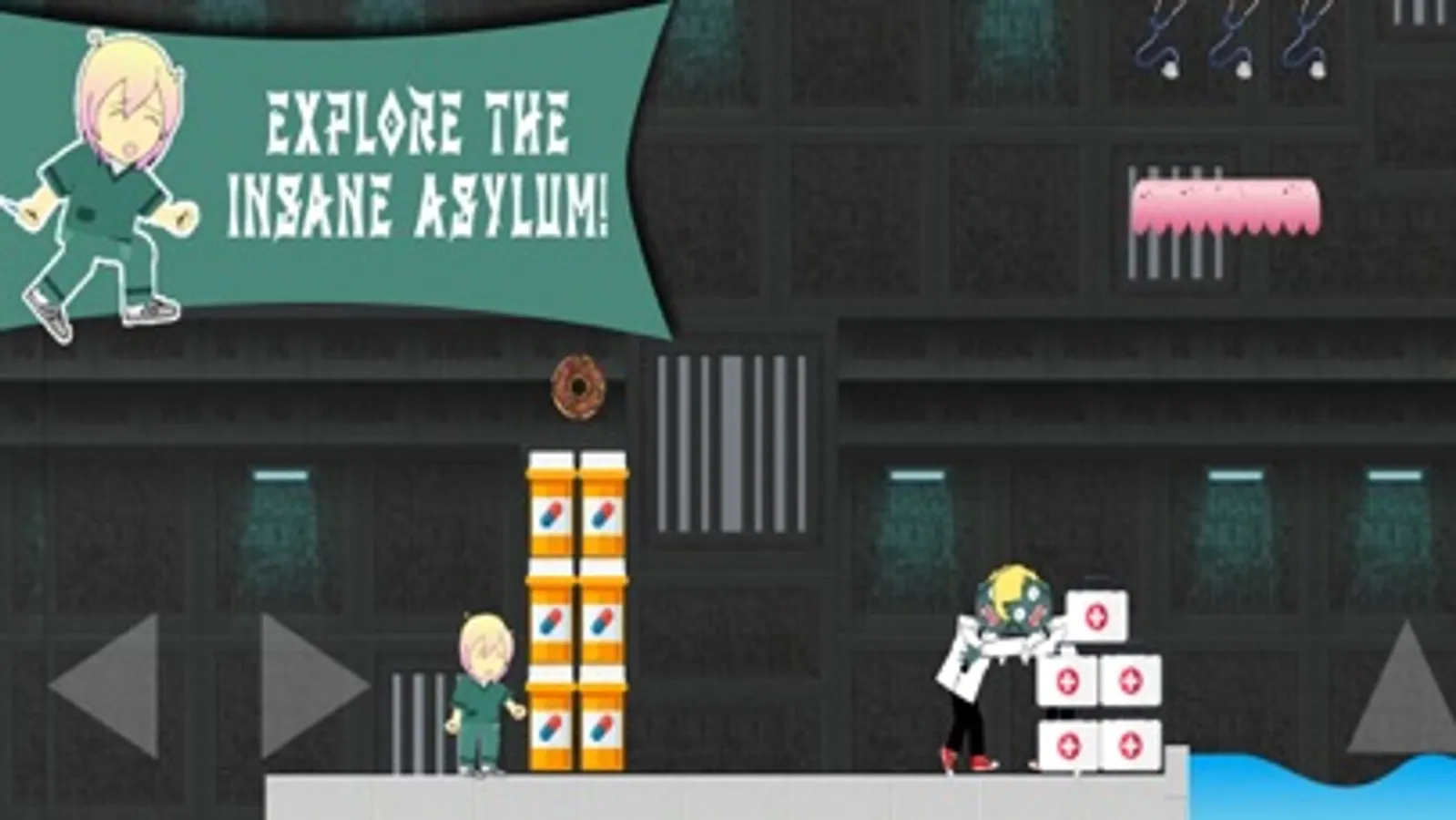 Jump on top of pill bottles or push them over to get around the zombies that are trying to take over the mental hospital.