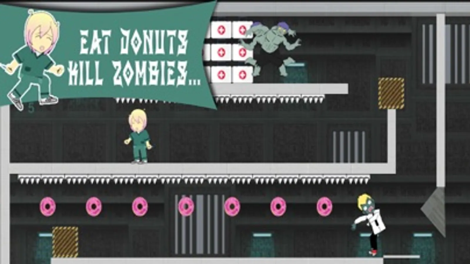 Keep running, score points and get on the leader board by consuming donuts, finding and grabbing more stethoscopes and emergency medical kits, green pills, eating oranges and killing zombies! Nurses love donuts and oranges!