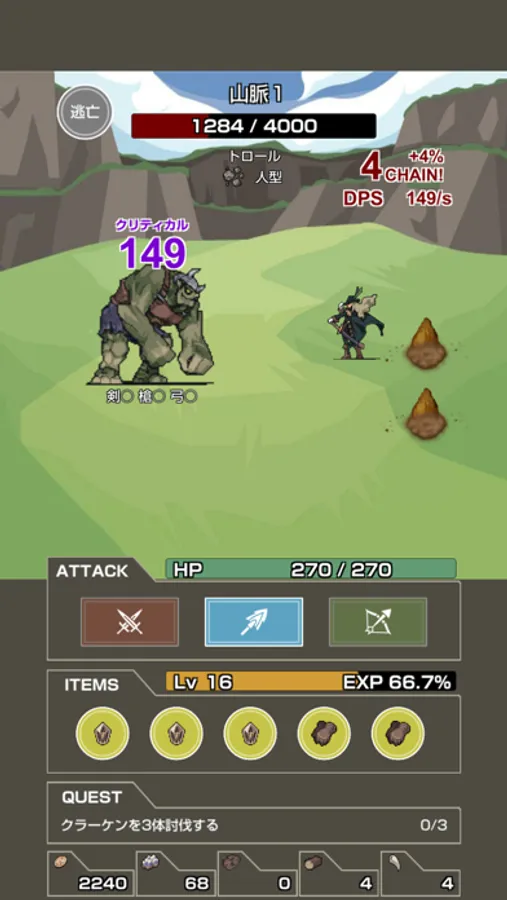 - 敵とのレンジに合った攻撃ボタンをひたすらタップするだけ!