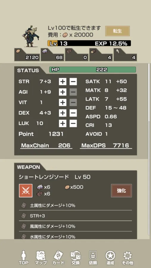 ◆ステータスポイント制でキャラクターを自由にカスタム