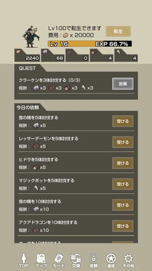 - デイリークエストの討伐依頼もこなすと強化素材が貰えて一石二鳥!