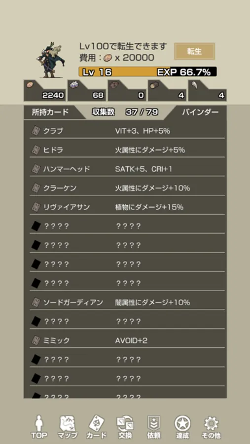 - モンスターカードはダメージアップやステータスアップなど効果は様々
