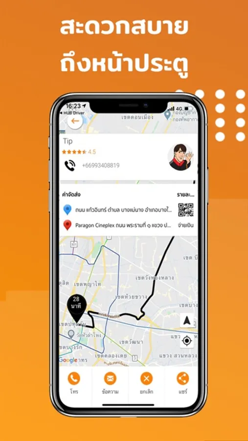 5.เมื่อถึงจุดหมายแล้ว สามารถชำระเงินด้วยเงินสดหรือเลือกชำระเงินผ่าน ระบบ Hub Wallet