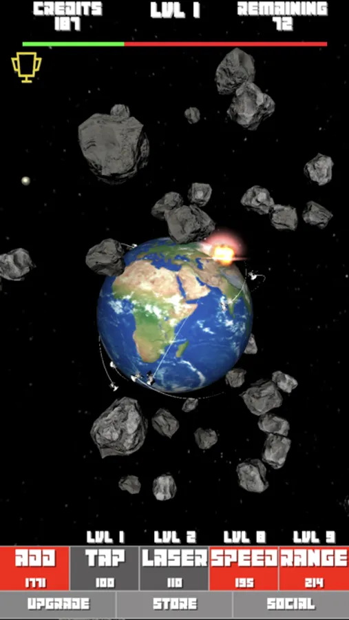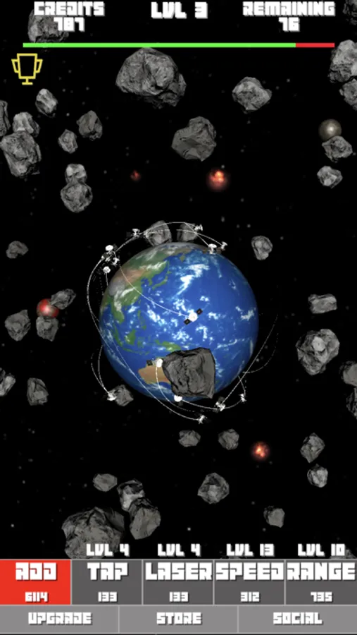 • Tap the asteroids that are slipping by your satellites