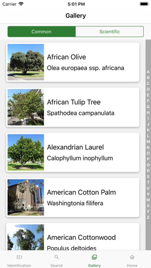 A comprehensive, helpful tool to identify species of trees, conifers & palms using stunning images & detailed descriptions. The Australian Tree ID allows you to identify more than 350 species using a simple identification key using traits such as leaf shape and colour, flower shape and fruit type. This App has over 2000 high quality images with a zoom in feature covering the overall tree form, leaf, flower, fruit, seeds and bark, arranged in an easy to use galley, sorted into either common or scientific names.