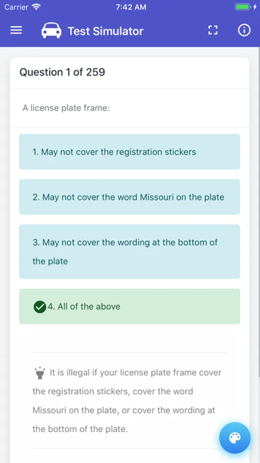 Our app is developed in a fashion that makes learning simple and direct with questions that are written based on the official Driver's Handbook. You will be able to concentrate entirely on learning from the questions efficiently since the interface is uncomplicated and there are NO ADVERTISEMENTS featured at all!