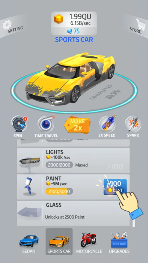 Even when you aren’t playing, enjoy seeing your car’s progression! The closer you are to the finish, the more money you get to unlock special content. Watch your projects evolve right in front of your eyes.