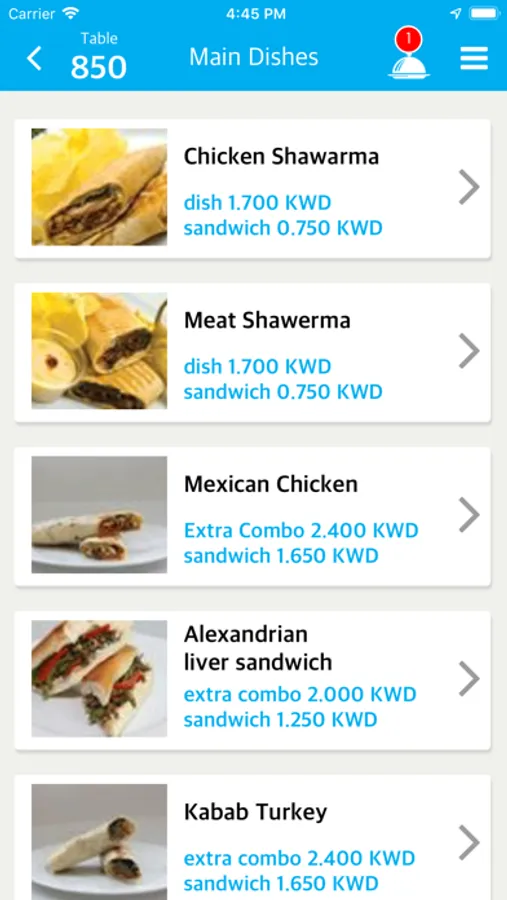 ٤ - يمكنك الآن الطلب مباشرة باستخدام المنيو المصور