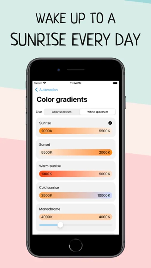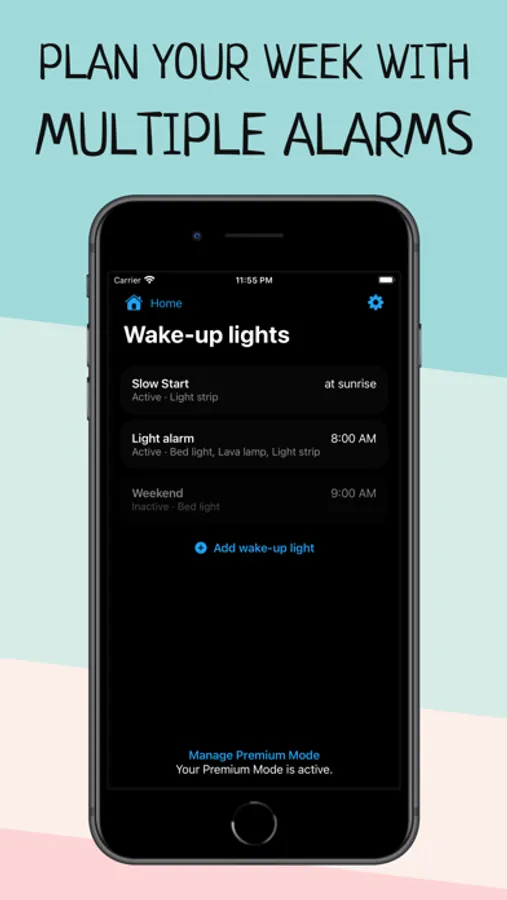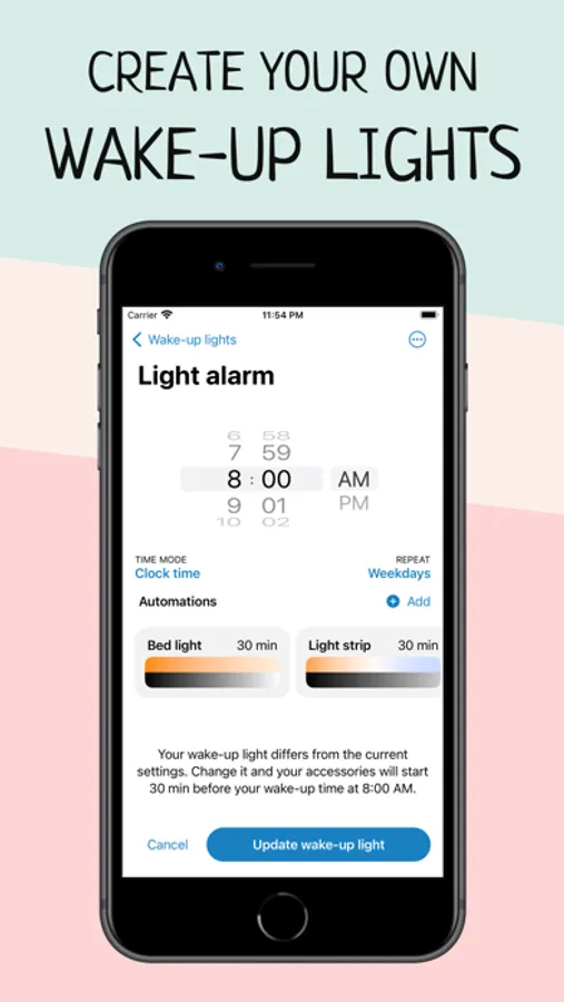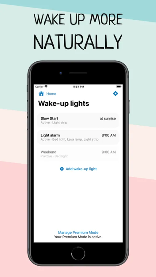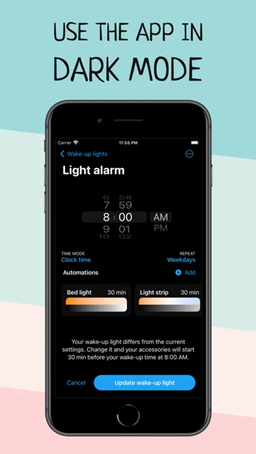Wake up more naturally with your wake-up light based on your smart HomeKit lights and improve your morning routine with Wake Up Light.