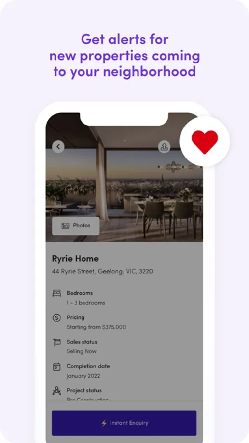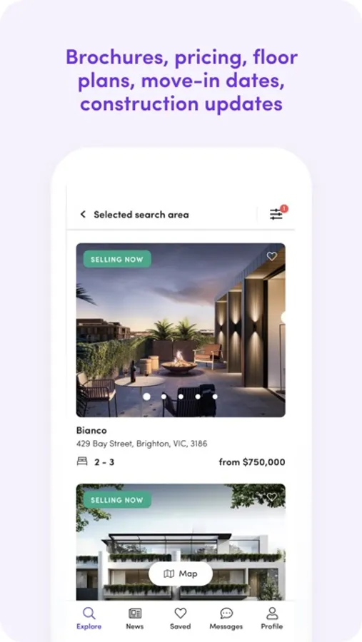 Our app only features new and off-the-plan housing stock, ensuring a clean and up-to-date search experience. Filter by popular locations, such as apartments in Melbourne, Sydney and Brisbane, and view beautiful photography and project renders for each listing.