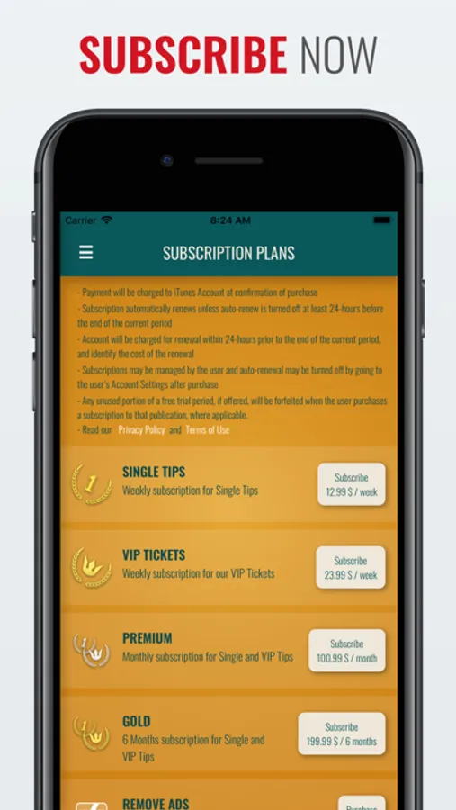 • SINGLE TIPS Subscription cost 12.99$/week - will unlock single match tips for one week