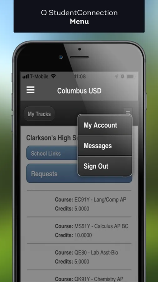 In addition to access to your data the Q StudentConnect mobile app allows you to: