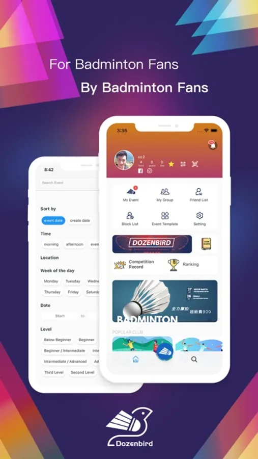 Dozenbird is a badminton activity management application that covers a wide range of functions to facilitate communication with other enthusiasts and help them participate in activities or competitions, making playing badminton more convenient and fun.