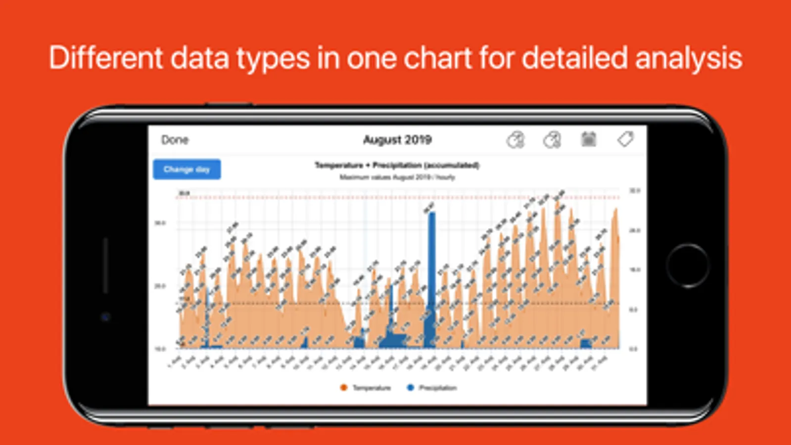 • cache and export data via iCloud our email to your other devices on which you also use myPWS*. This saves data API calls which are limited to 1,500 per day through Wunderground.com via your API key