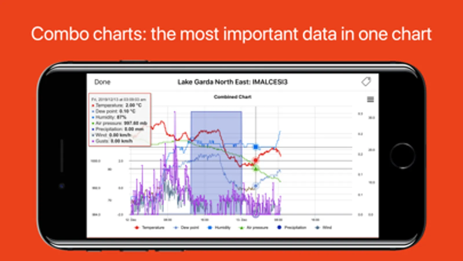 Up to two different types of data can be displayed together in a diagram, e.g. to look at temperature and air pressure together in one graph.